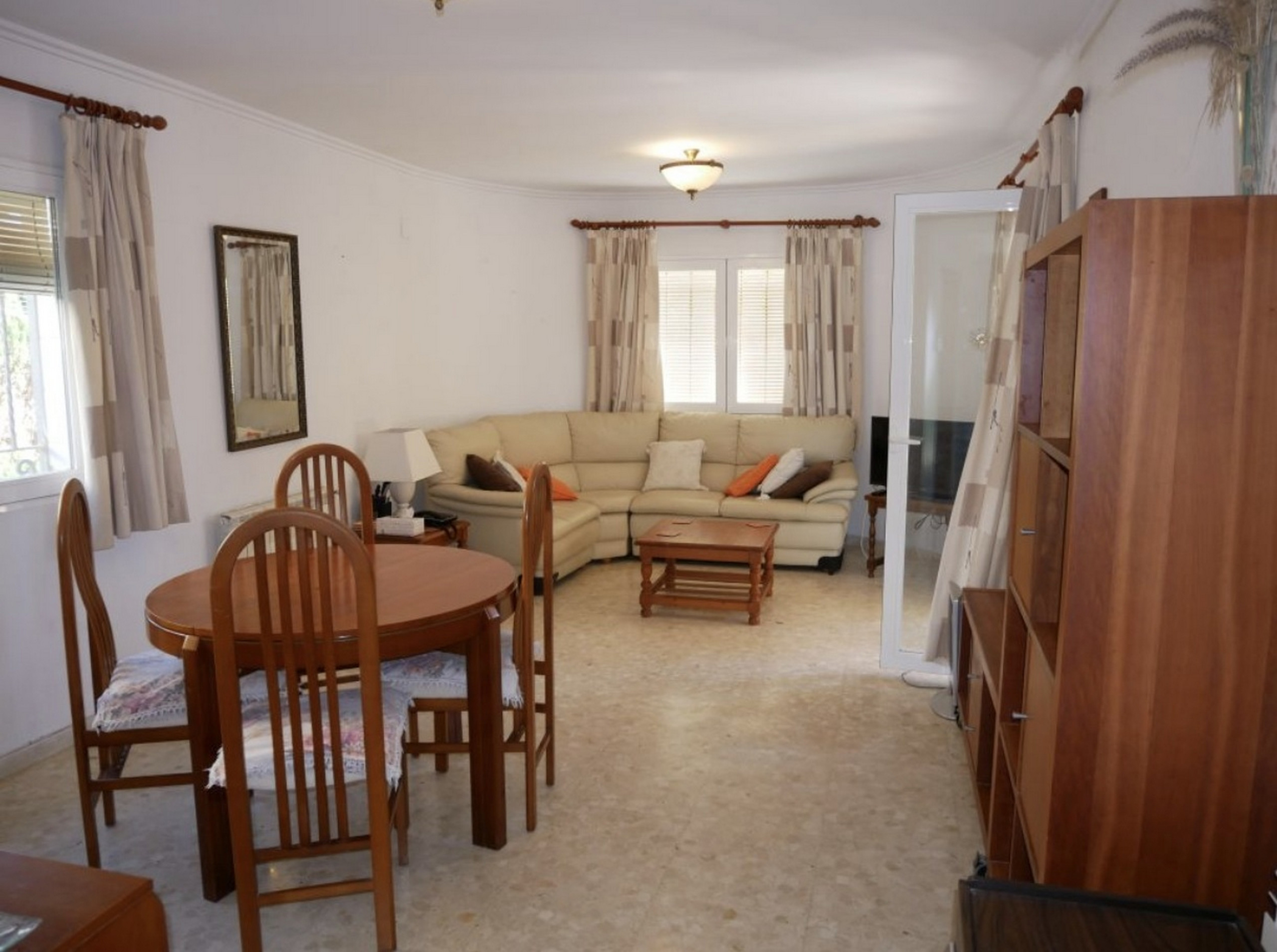Los espacios interiores del chalet son amplios, luminosos y están decorados en un estilo cálido y funcional, pensado para estancias vacacionales cómodas. El salón-comedor ofrece una zona acogedora para reunirse, descansar o disfrutar de una comida tranquila, con acceso directo al exterior, lo que aporta una agradable continuidad entre interior y jardín.