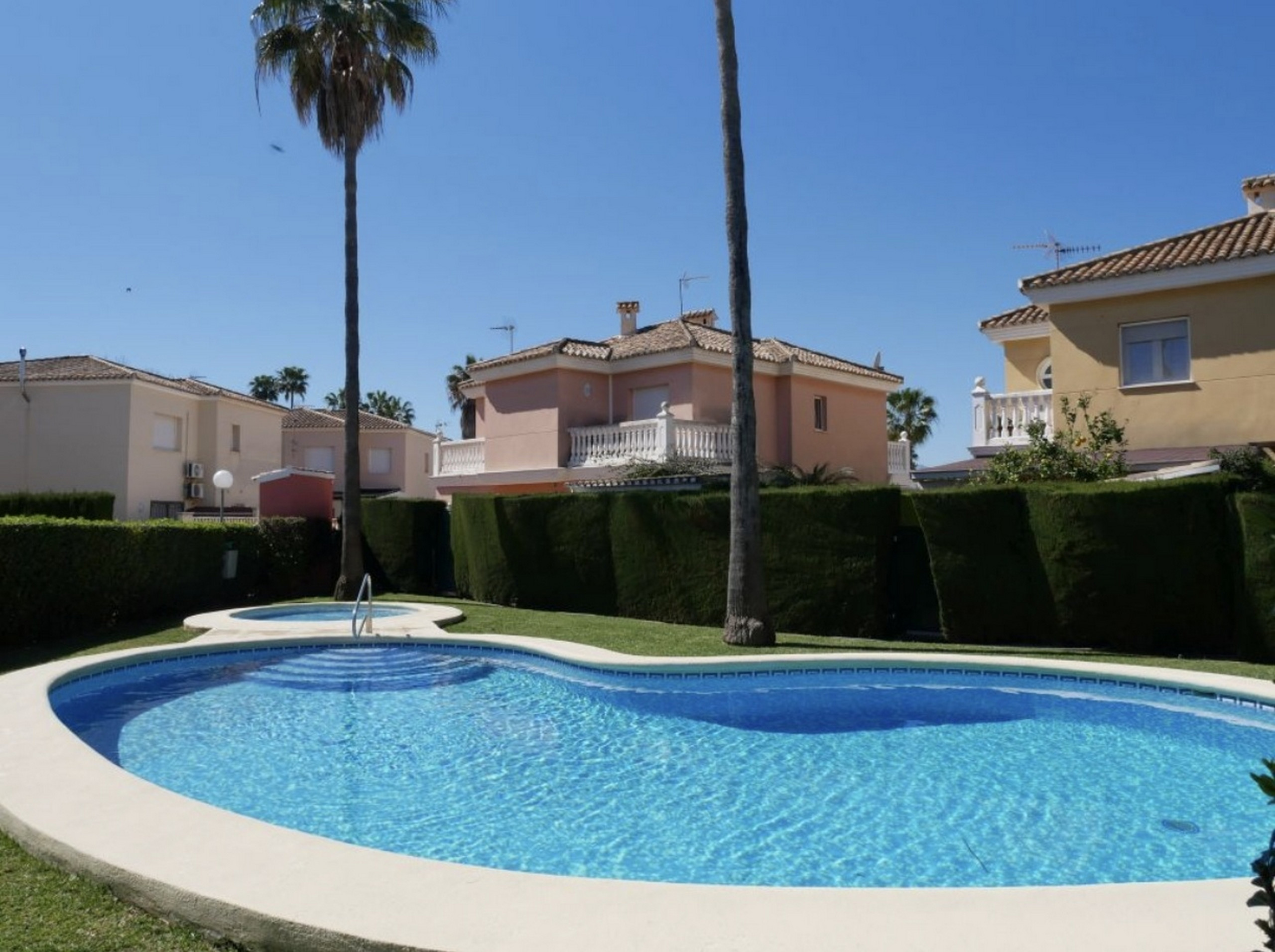 La vivienda se encuentra dentro de una cuidada urbanización residencial, caracterizada por su ambiente sereno, jardines bien mantenidos y una clara orientación al descanso. A pocos minutos a pie se extiende la espectacular playa de arena fina de Oliva Nova, amplia, natural y poco masificada, ideal tanto para adultos como para niños.