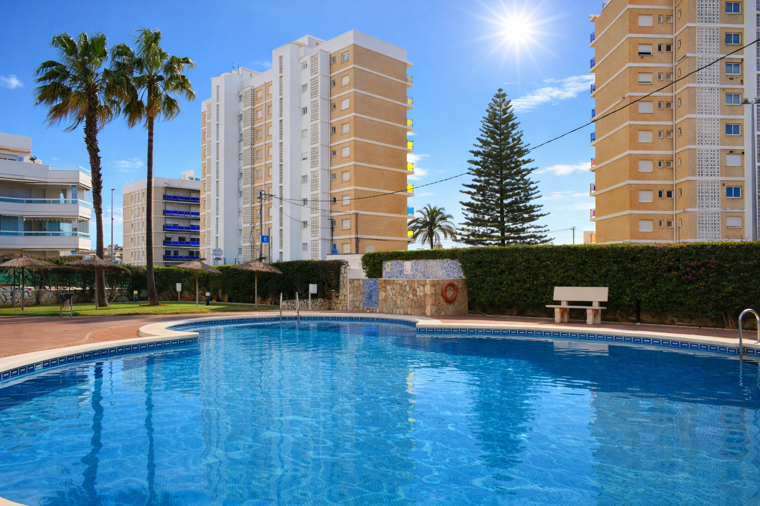 The apartment has 2 bedrooms and 2 bathrooms. The accommodation offers a lot of privacy, a lawned communal garden with trees and wonderful views of the pool, the garden, the street and other buildings. Its comfort and the vicinity of the beach, places to shop, sports activities, entertainment facilities, places to go out, sights and culture make this an ideal apartment to spend your holidays in Spain with family or friends.