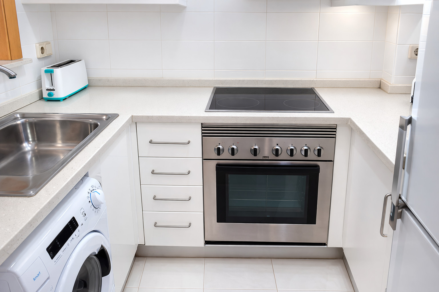 In the induction independent kitchen, refrigerator, microwave, freezer, dishwasher, dishes/cutlery, kitchen utensils, coffee machine and toaster are provided.