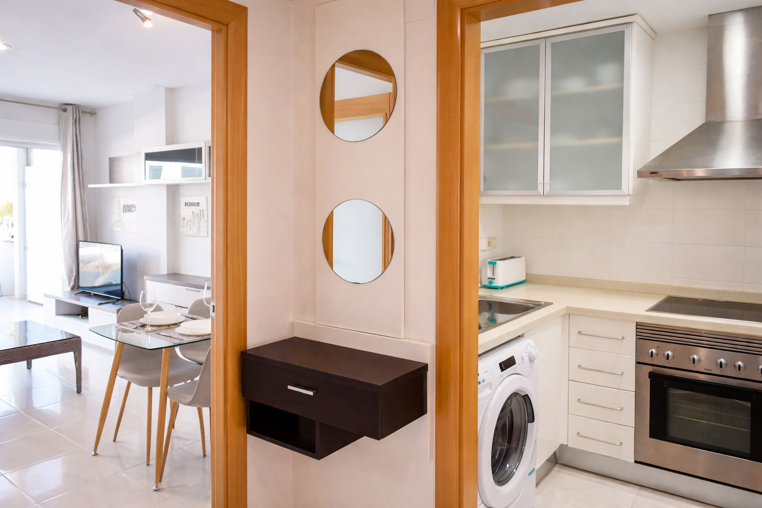 With 55 m² of surface area, the apartment has capacity for 4 people and features two bedrooms, a full bathroom and a living-dining area with an open kitchen. Its interior stands out for a modern and cosy decoration, where light tones, natural wood and decorative details predominate, providing a relaxing and pleasant atmosphere, ideal for disconnecting during holidays.