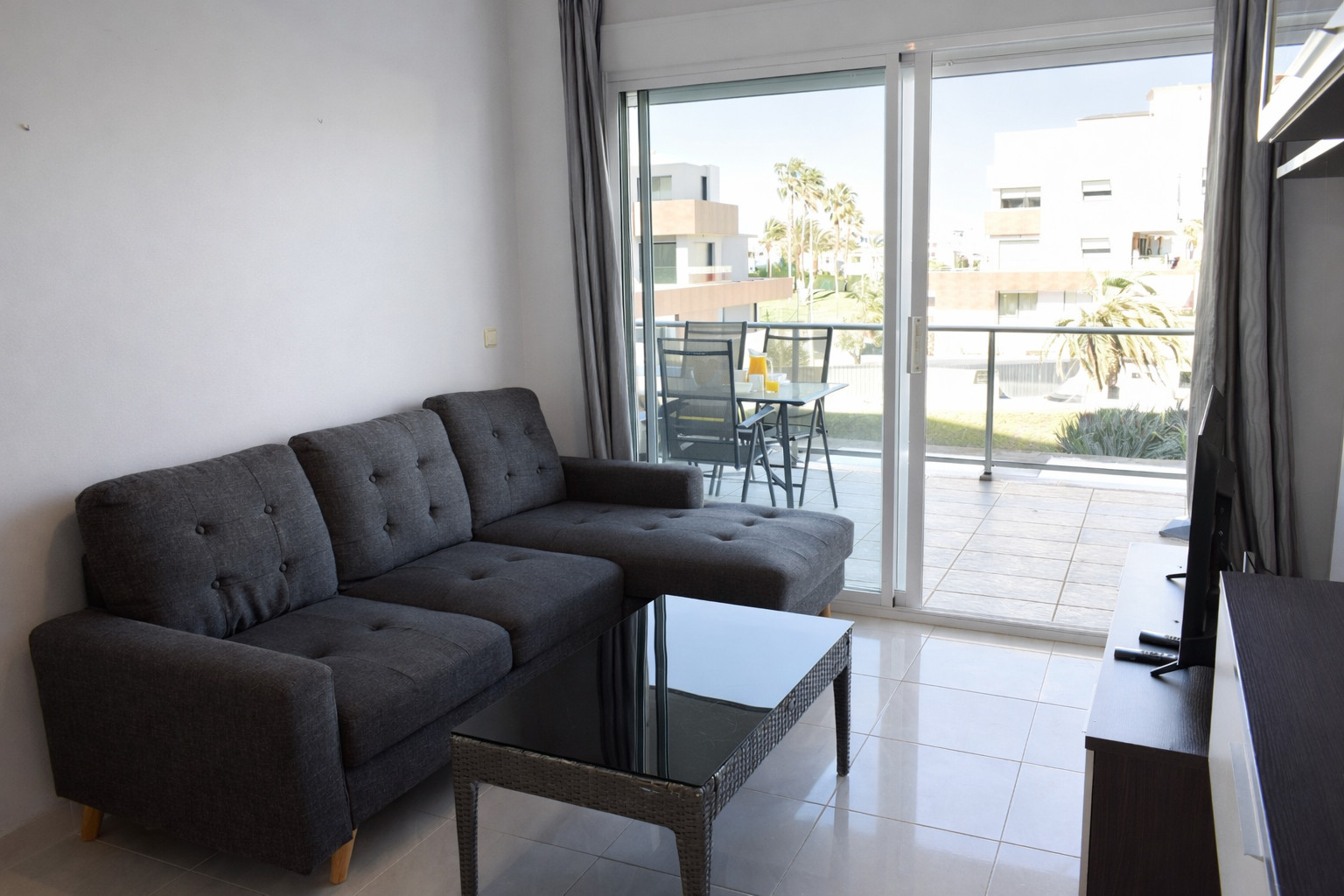 The apartment features a cozy bedroom, a bright living room, a fully equipped separate kitchen, and a full bathroom. From the terrace, you can enjoy beautiful views of the garden and the golf course. Additionally, the accommodation has air conditioning in all areas to ensure your comfort.