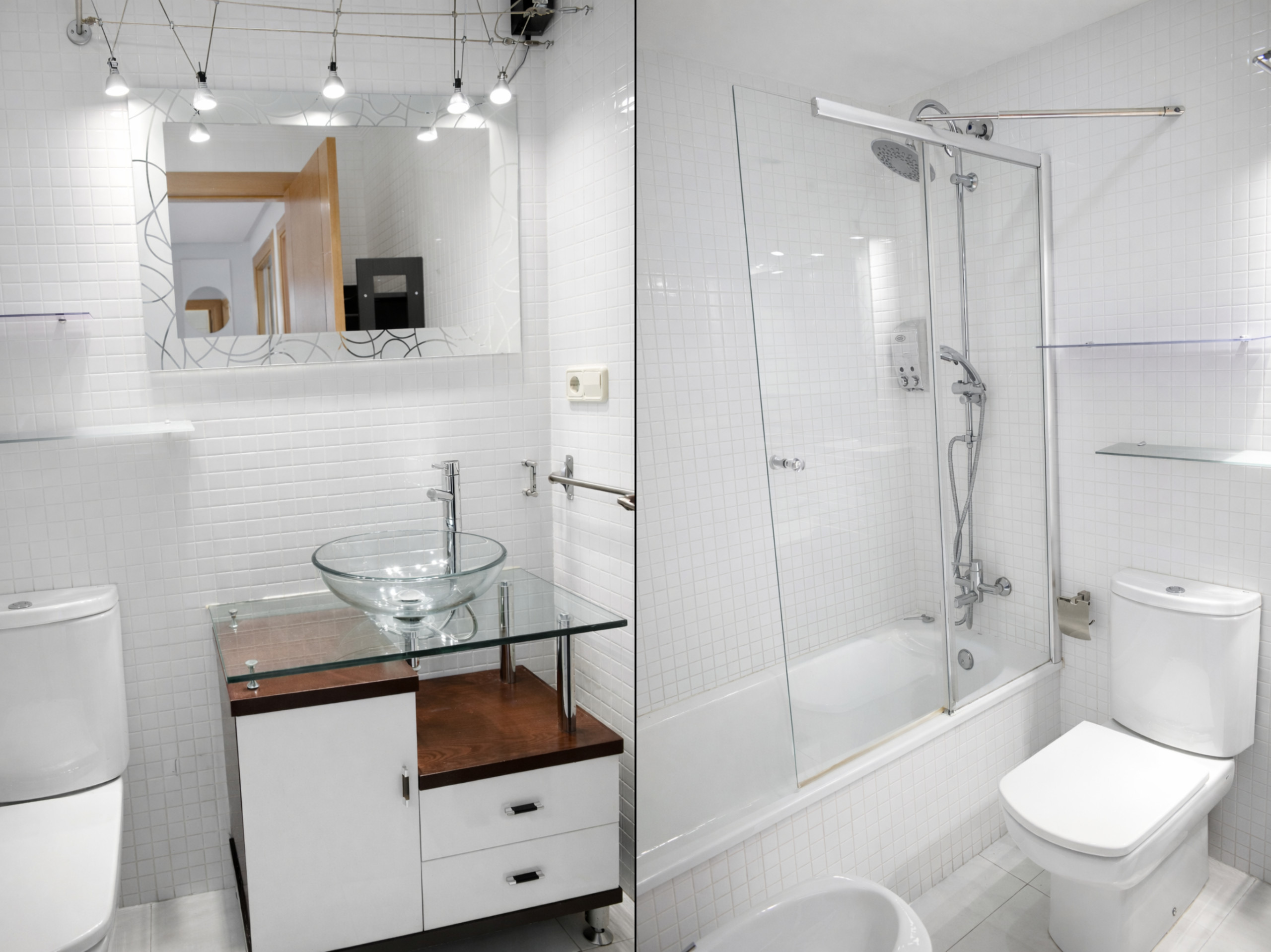The heart of the apartment is its living-dining room, an open space that integrates the rest area, dining area, and kitchen in a functional and well-utilised environment. The room receives abundant natural light thanks to a large sliding glass door.