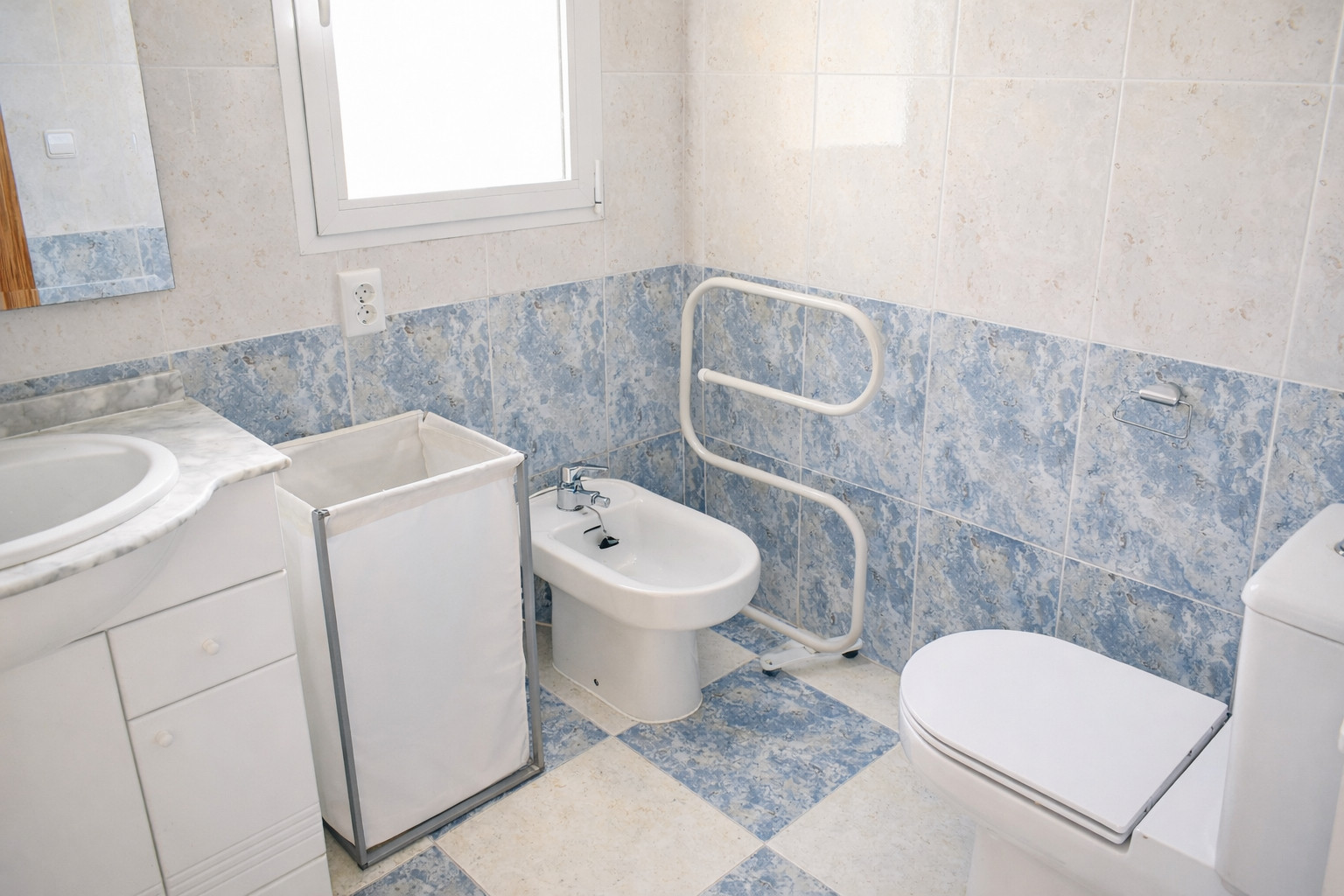 Les chambres comprennent une chambre avec 4 lits superposés, une autre avec un lit double et une troisième chambre avec un lit double et une salle de bain attenante. De plus, il y a un total de 2 salles de bain, l'une avec lavabo, combinaison douche et baignoire, bidet, WC et sèche-cheveux, et l'autre en suite avec lavabo, douche et WC.