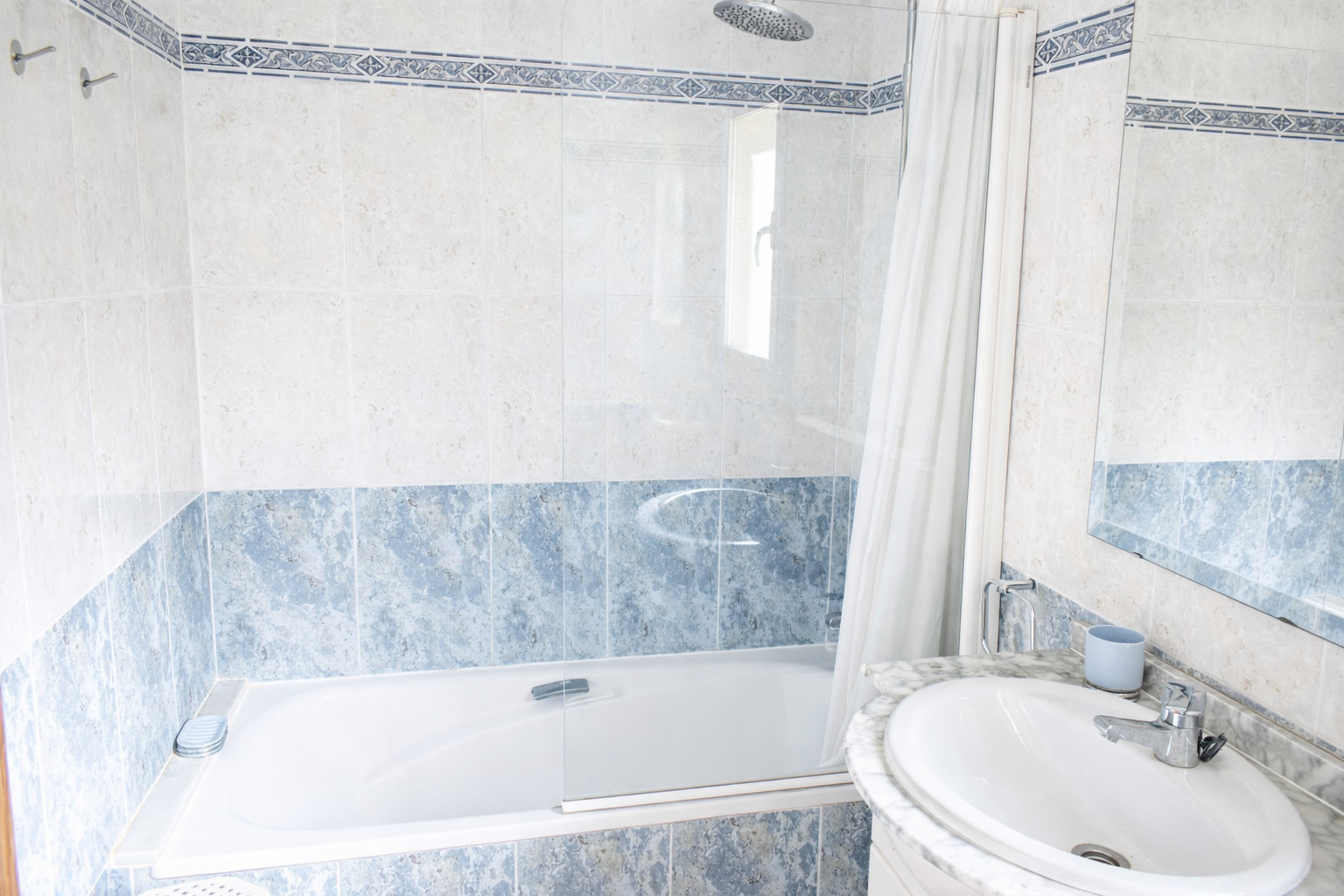 Au rez-de-chaussée se trouve l'une des chambres, très pratique pour ceux qui préfèrent éviter les escaliers ou recherchent une plus grande indépendance. Dans cette même pièce, à l'intérieur de la chambre, se trouve une salle de bain complète avec baignoire, idéale pour se détendre après une journée active.