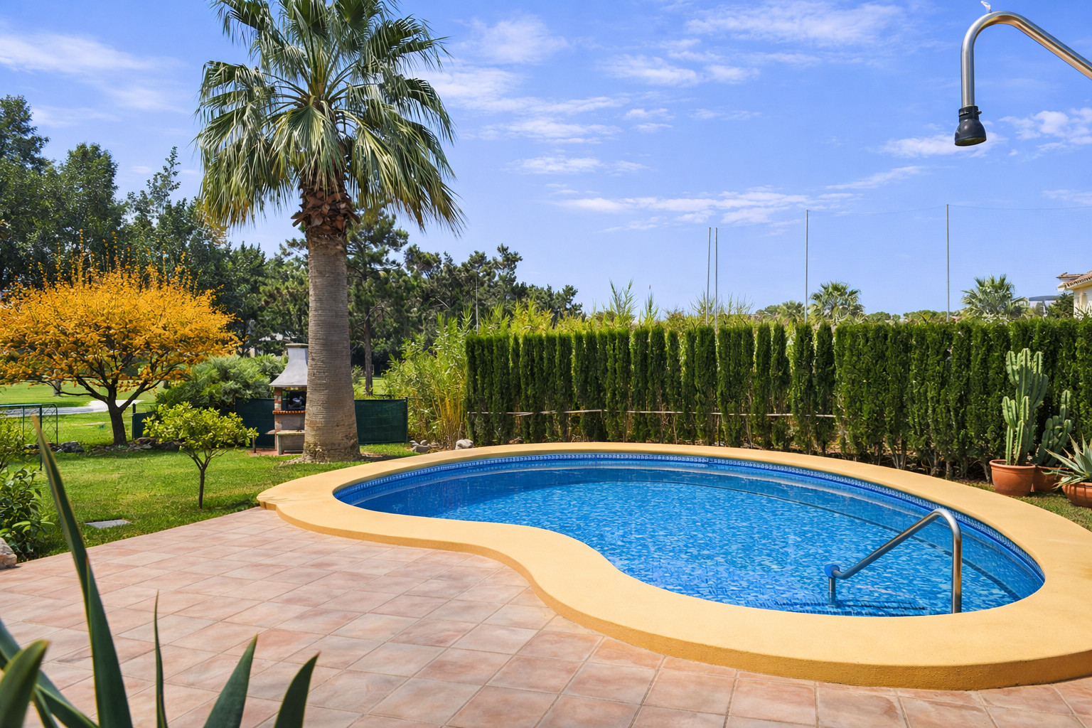 La villa offre des vues magnifiques sur le jardin et la piscine, créant une atmosphère relaxante et paisible. Idéalement située, elle se trouve à quelques pas de divers équipements, tels que le supermarché "LA BOTIGUETA" à 350 mètres, le restaurant "CA PEPICA" à 450 mètres et la plage de sable "PAUPI" à 600 mètres. De plus, la ville d'Oliva est à seulement 2 km, et le parcours de golf "OLIVA NOVA GOLF" est à 4 km.